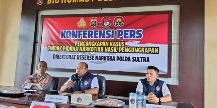 KENDARI – Direktorat Reserse Narkotika Polda Sulawesi Tenggara (Sultra) berhasil mengungkap kasus peredaran narkotika dalam jumlah besar dengan mengamankan sabu seberat lebih