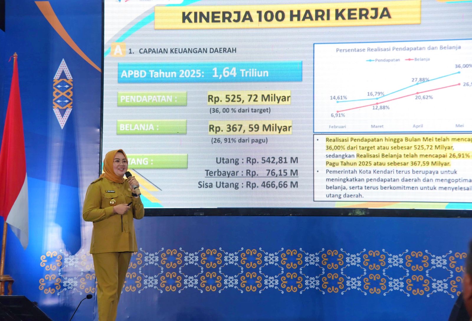 Prestasi yang diraih dalam 100 hari kerja antara lain: TOP Pembina BUMD 2025 Bintang 4, Juara Umum HUT Sultra ke-61, Juara 1 Stand Terbaik Kabupaten/Kota & Stand Dekranasda, dan terpilihnya Wali Kota Kendari sebagai Ketua APEKSI Komwil VI periode 2025–2028.