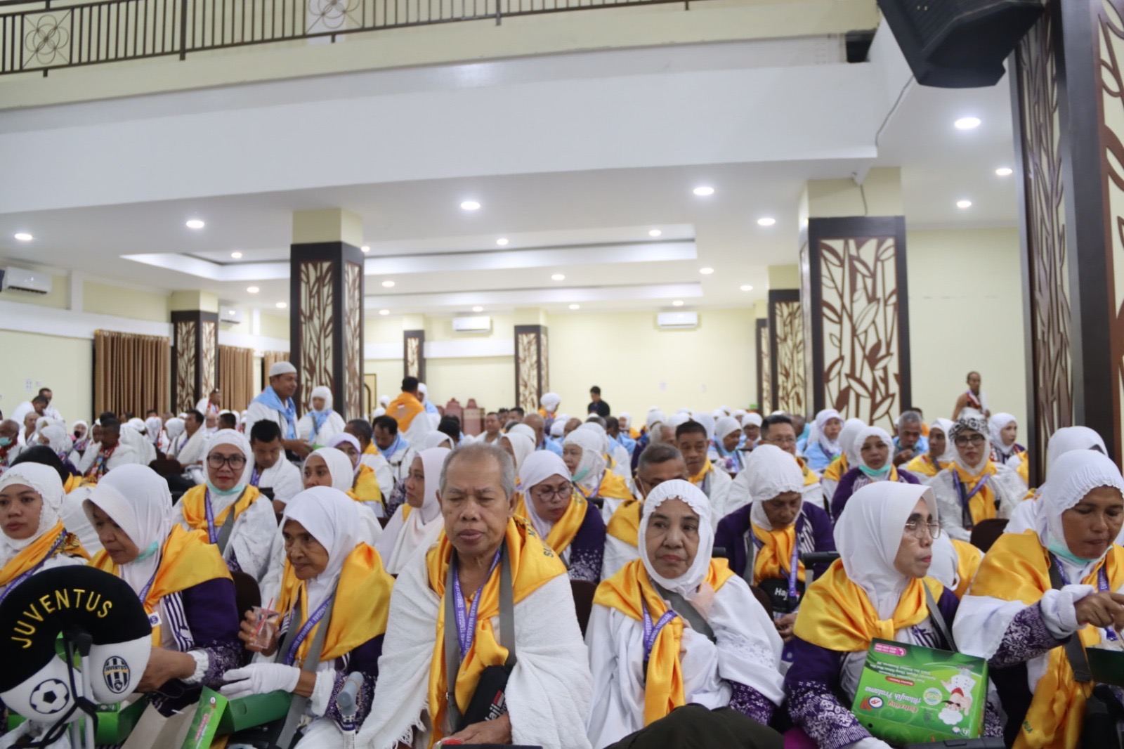 Kakanwil Kemenag Sultra, H. Muhamad Saleh, menyampaikan apresiasi atas kerja keras semua pihak yang terlibat dalam kelancaran pemberangkatan JCH Sultra.