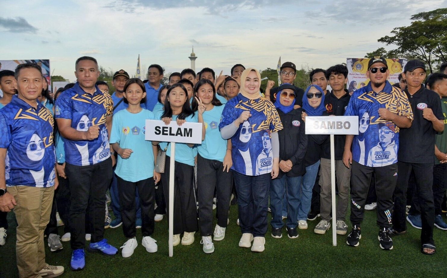 Wali Kota Kendari, Siska Karina Imran bersama jajaran dan Atlit foto bersama usai pembukaan Wali Kota Kendari Cup 2025 di Balai Kota Kendari, Kamis (01/05/2025).