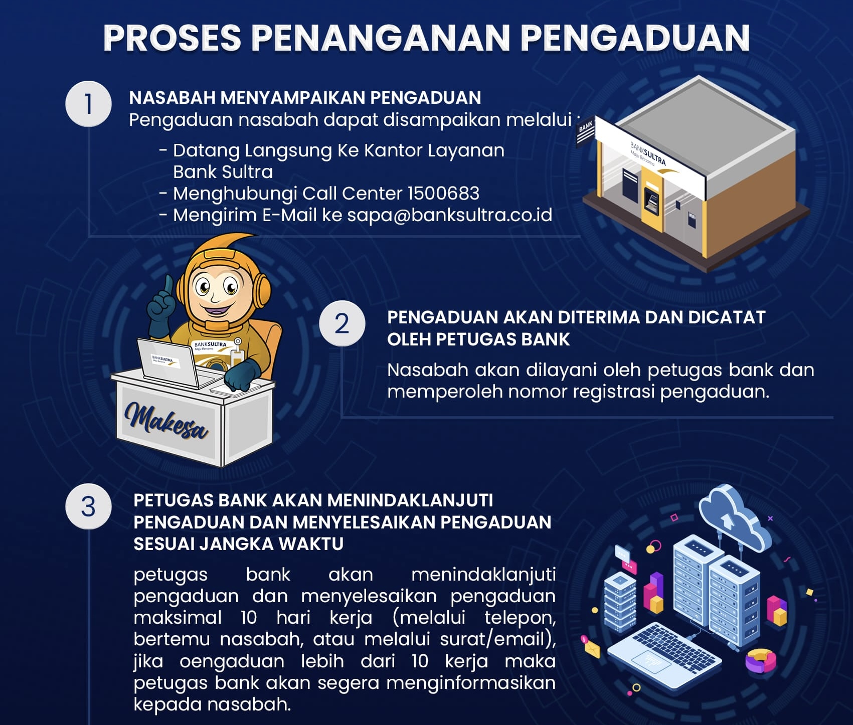 Bank Sultra memiliki prosedur terstruktur untuk memastikan pengaduan ditangani cepat dan akurat.  Tahapannya meliputi: