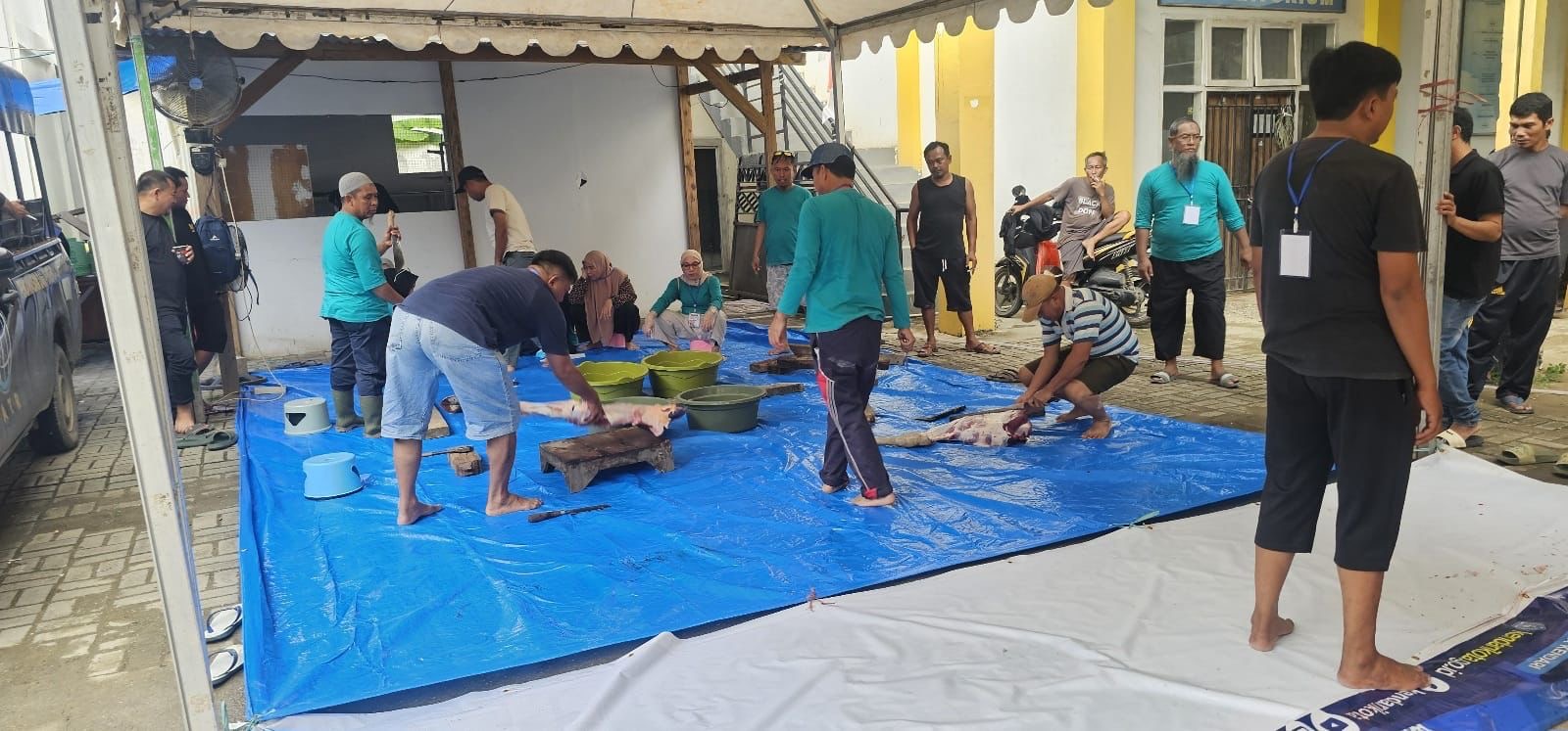 Pada Sabtu (7/6/2025), lima ekor sapi dikurbankan dan dibagikan kepada masyarakat sekitar kantor dinas dan warga kurang mampu.