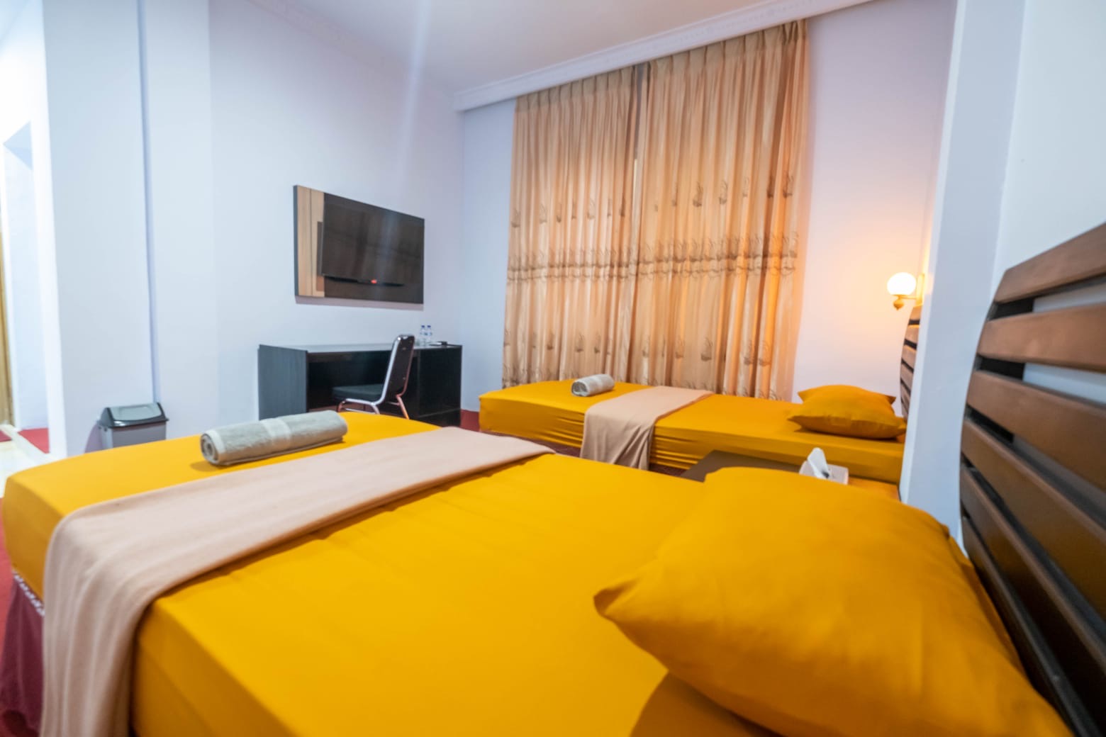 Nikmati kenyamanan 43 kamar dengan fasilitas modern, termasuk bathtub dan TV Android.