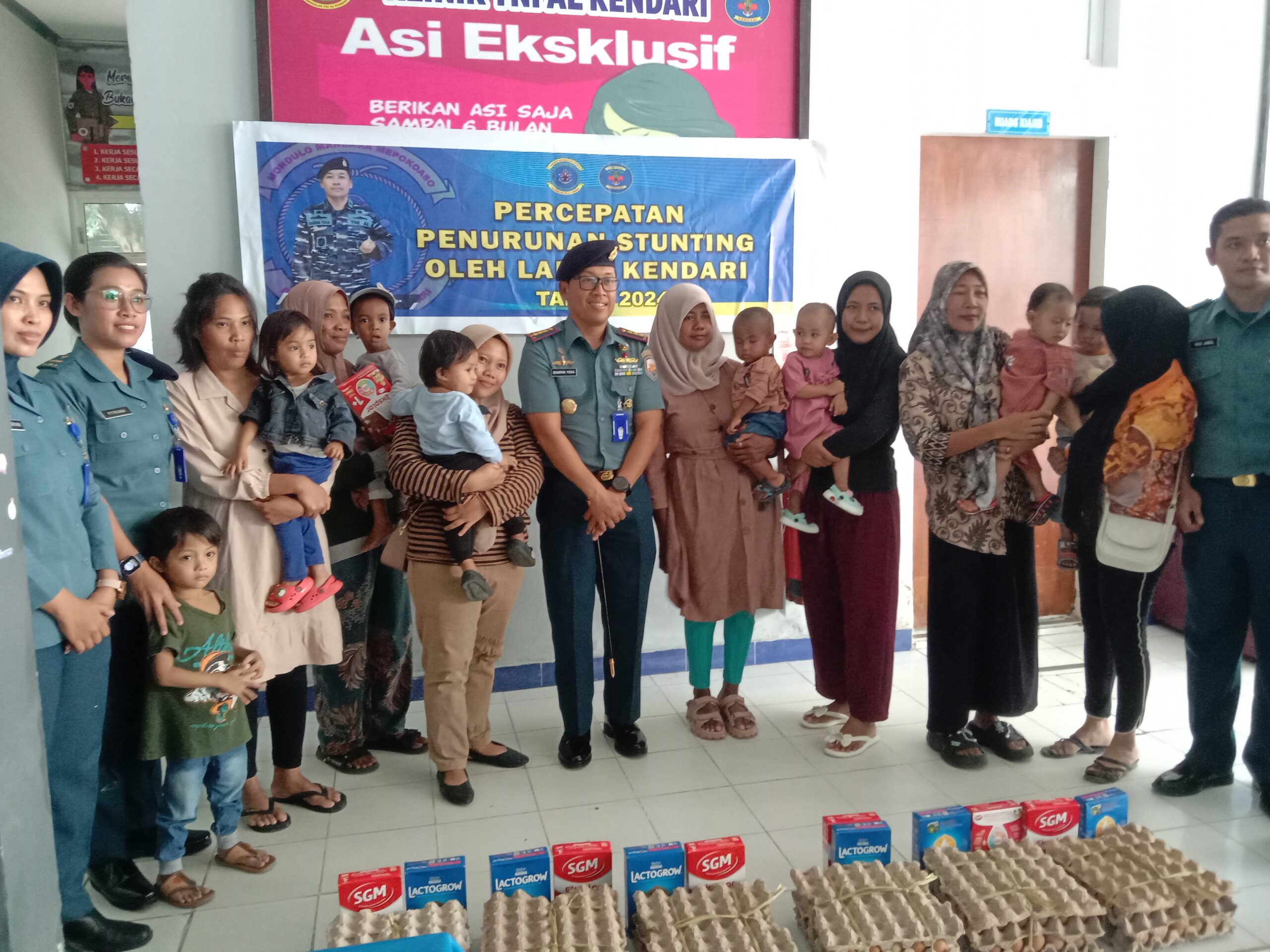 Radarkendari.com, KENDARI – Komandan Pangkalan Angkatan Laut (Danlanal) Kendari Kolonel Laut (P) I Gede Dharma Yoga menyalurkan bantuan makanan bergizi bagi balita stunting yang berlangsung di Klinik Lanal Kendari, Kasilampe, Kamis (30/5) siang.