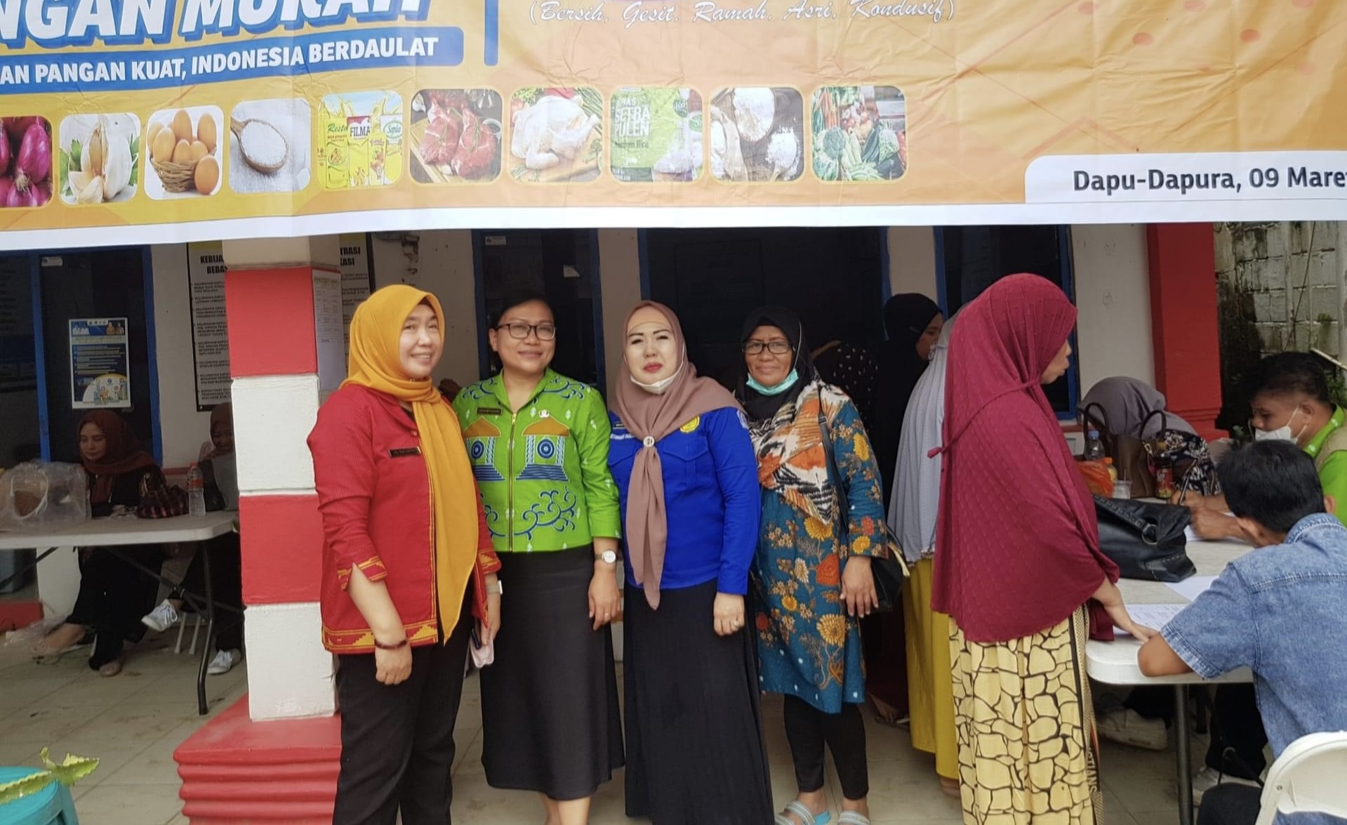 Sekretaris Dinas Ketapang Kota Kendari, Arianti Patiun bersama jajaran foto bersama usai memantau Gerakan Pangan Murah di Kota Kendari.