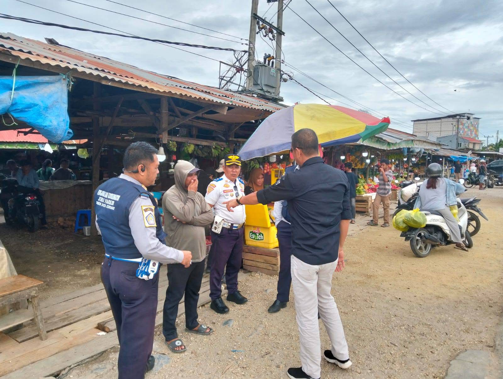 Kepala Dishub Kendari, Paminuddin saat berkoordinasi dengan manajemen Pasar Baruga terkait pengelolaan parkir di kawasan tersebut.