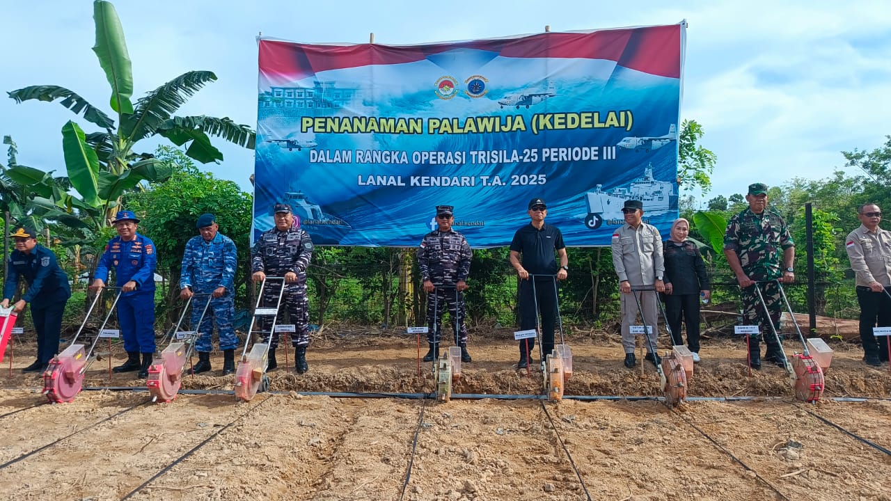 Kepada media, Dansatgas Trisila-25, Laksamana Pertama TNI Endra Hartono, S.H., M.Han.,mengungkapkan bahwa penanaman kedelai merupakan bentuk sinergitas antara Satgas Trisila-25, Lanal Kendari dan seluruh elemen terkait dalam mewujudkan ketahanan pangan.