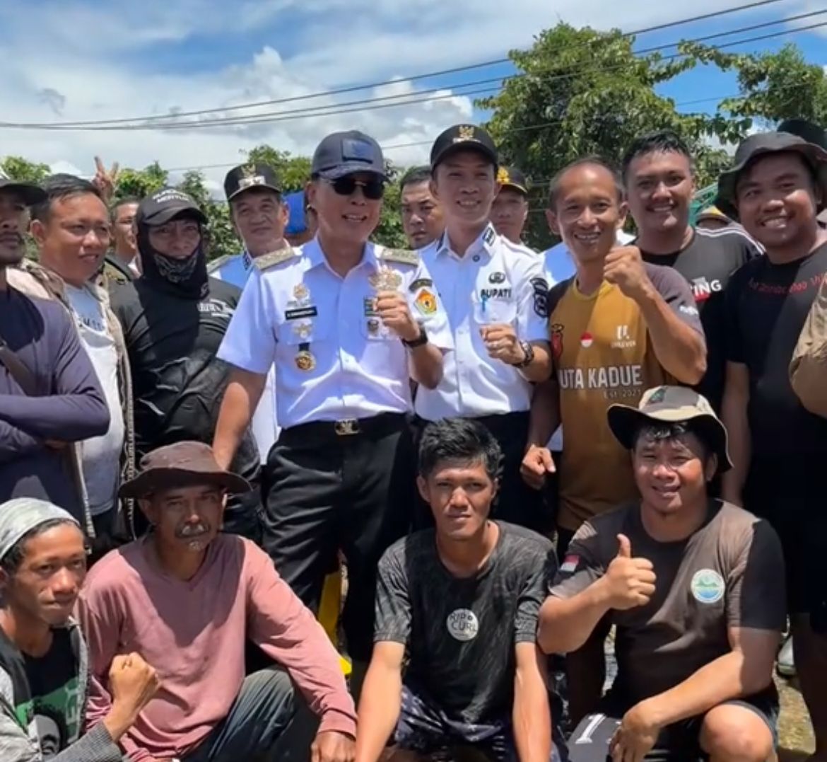 Gubernur Sultra, Andi Sumangerukka foto bersama joki pincara di Desa Sambandete Konawe Utara, Rabu (09/04/2025).