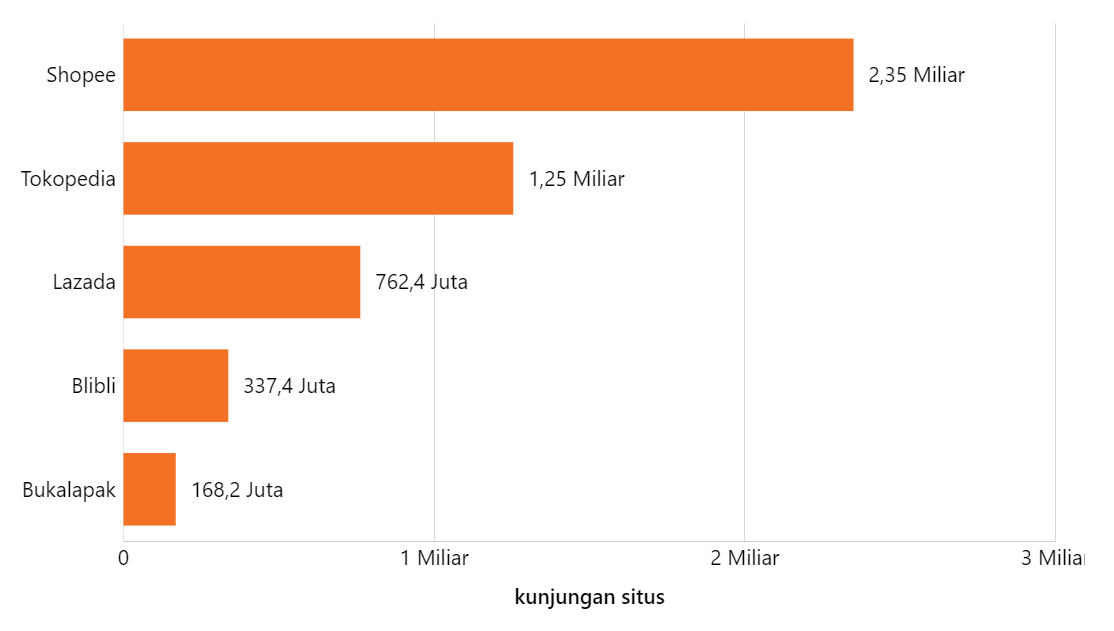 Data dari similar web, menyatakan bahwa selama periode januari – desember 2023 dari lima e-commerce rupanya marketplace shopee paling banyak dikunjungi sebanyak 2,35 Milliar pengunjung dan sepanjang tahun 2023 jumlah kunjungan shopee tercata naik 41,39% (year to date)