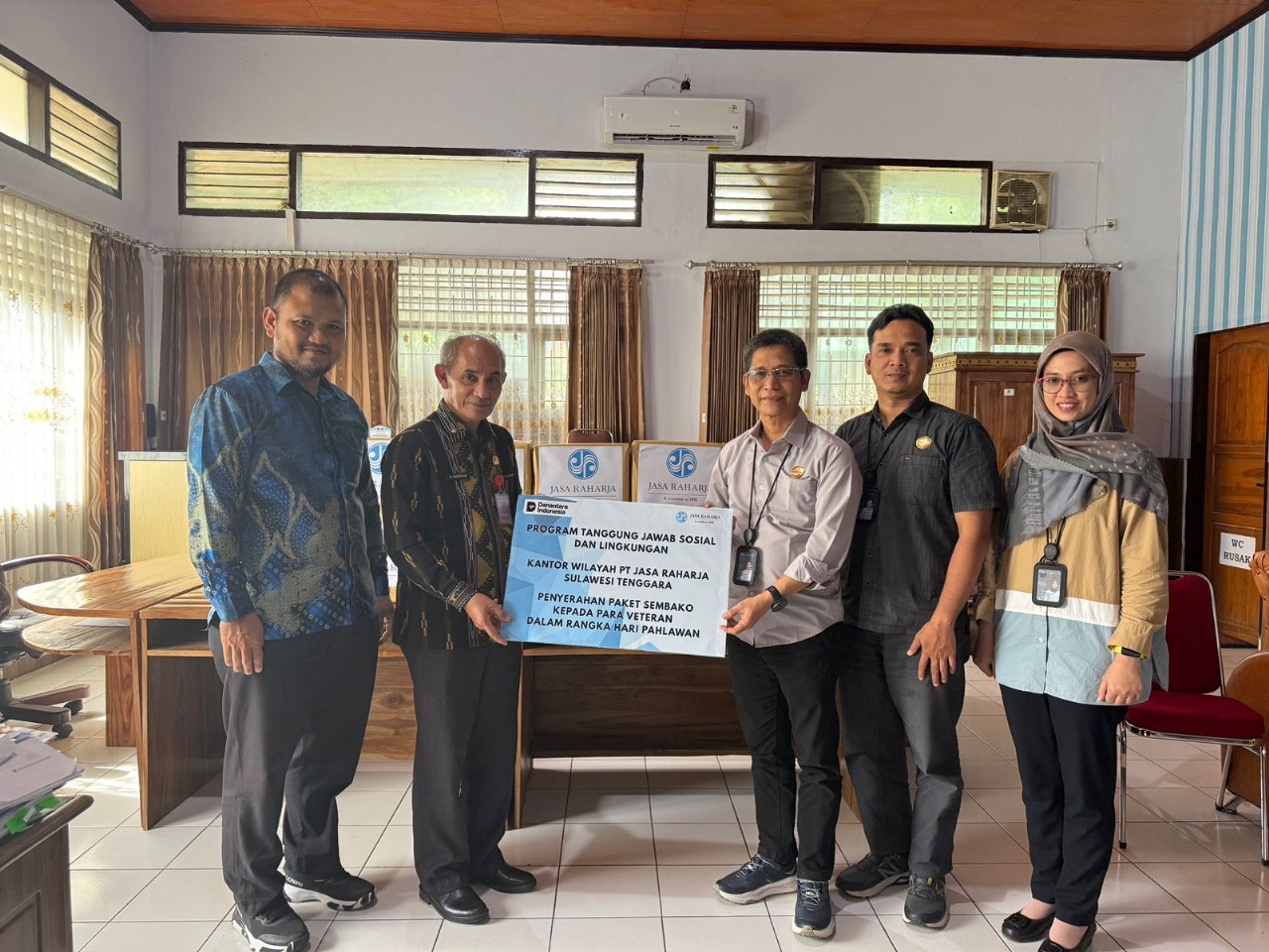 Jasa Raharja Gandeng Dinsos Kendari Serahkan Bantuan Sembako kepada Veteran di Momentum Hari Pahlawan