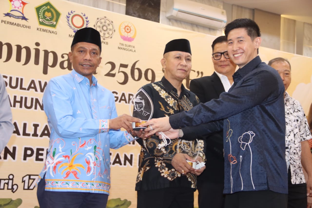 RADARKENDARI.COM, Kakanwil Kementerian Agama Provinsi Sulawesi Tenggara (Sultra), H. Muhamad Saleh, memberikan sambutan pada Malam Perayaan Waisak Sannipata 2569 BE tahun 2025 di Hotel Fortune Kendari, Sabtu (17/5/2025).