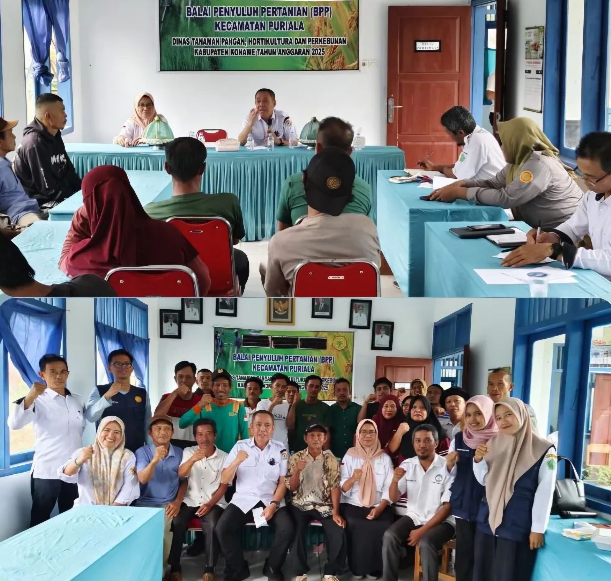 Ketgam : Pelaksana Tugas (Plt) Kepala Dinas Tanaman Pangan dan Peternakan (Distanak) Provinsi Sultra, Prof. Muhammad Taufik bersama team Distanak Sultra saat sosialisasi Brigade pangan di lokasi CSR Kec. Puriala, Kabupaten Konawe