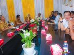 Ketua DPRD Kota Kendari, Inarto bersama Wali Kota Kendari Siska Karina Imran menjamu tamu upacara peringatan HUT Kota Kendari ke-194 di Balai Kota Kendari.