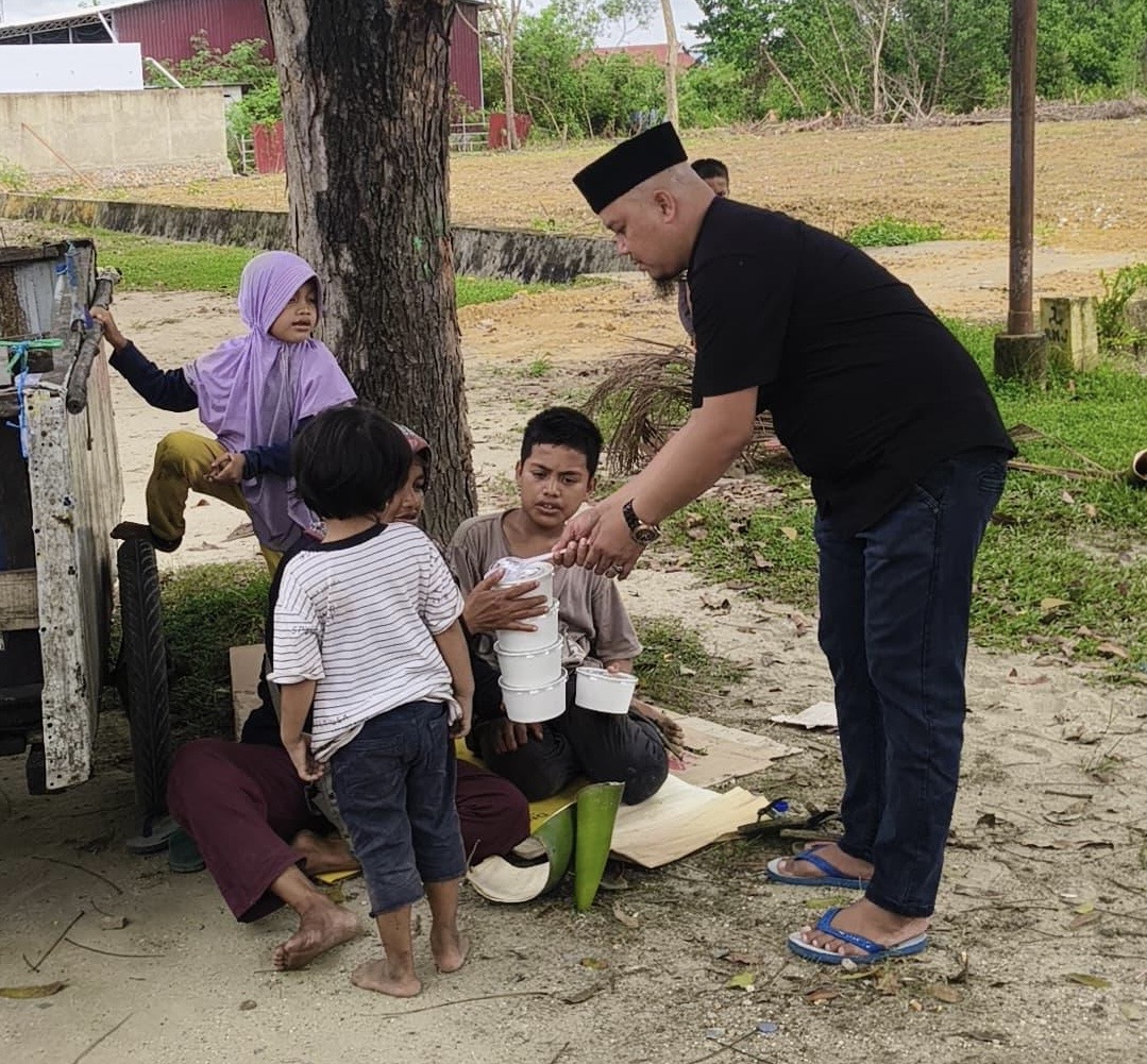 Ketua Bimo Sultra, Uchank menyalurkan makanan gratis bagi warga kurang mampu di Kota Kendari.