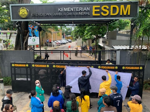 BEM Perguruan Tinggi Muhammadiyah Zona III Jakarta saat aksi di depan Kementerian ESDM.