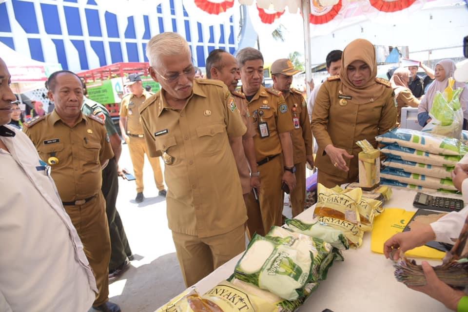 Sekda Sultra, Asrun Lio meninjau pelaksanaan Gerakan Pangan Murah di Pelataran Balai Kota Kendari.