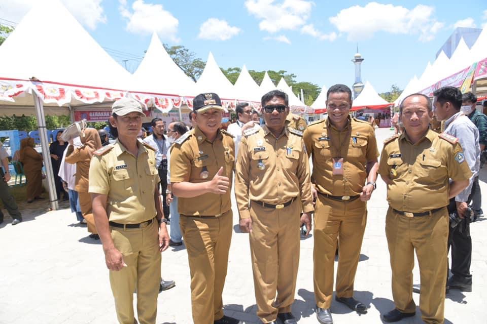 Kepala Dinas Ketapang Kota Kendari, Abdul Rauf foto bersama jajaran dalam Pasar Pangan Murah di Pelataran Balai Kota Kendari.