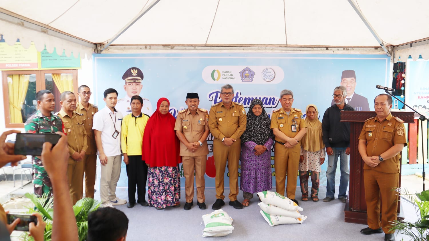 Pj Wali Kota Kendari, Muhammad Yusup bersama Sekda dan Kadis Pangan bersama keluarga penerima manfaat mengkampanyekan stop boros pangan di Kelurahan Mokoau.