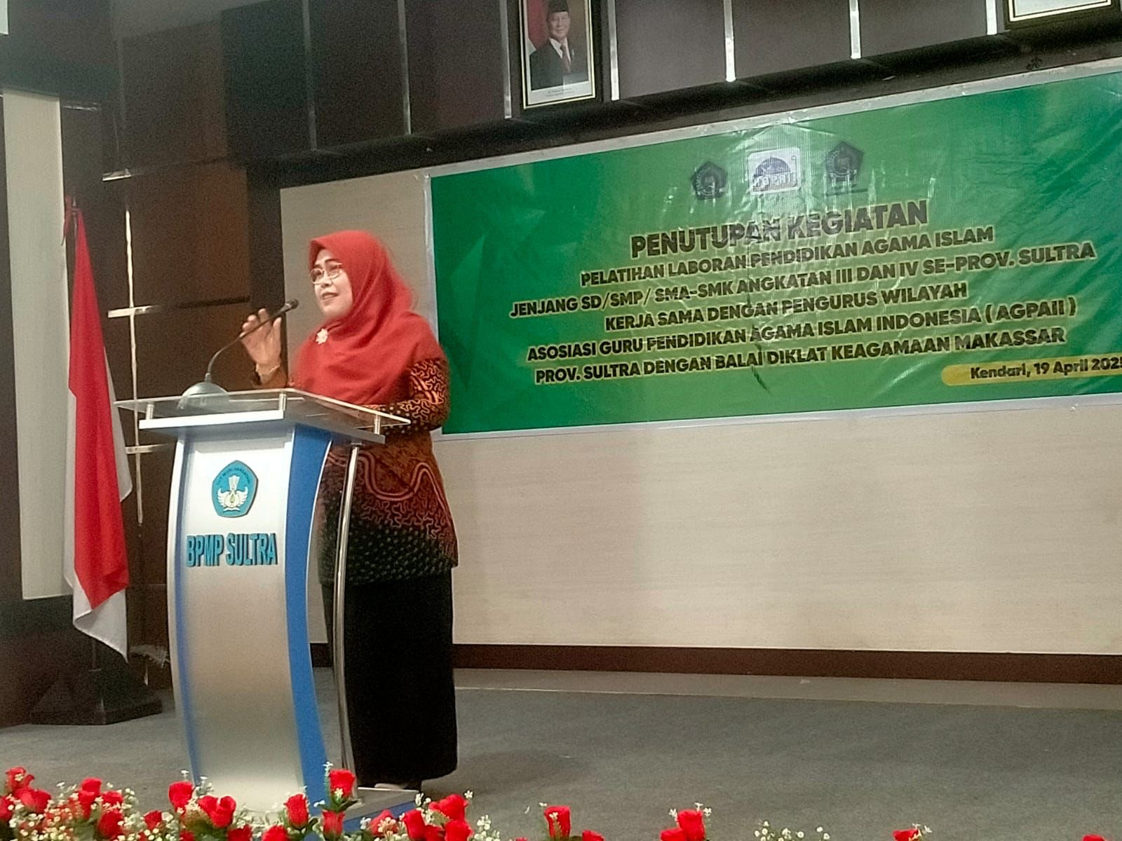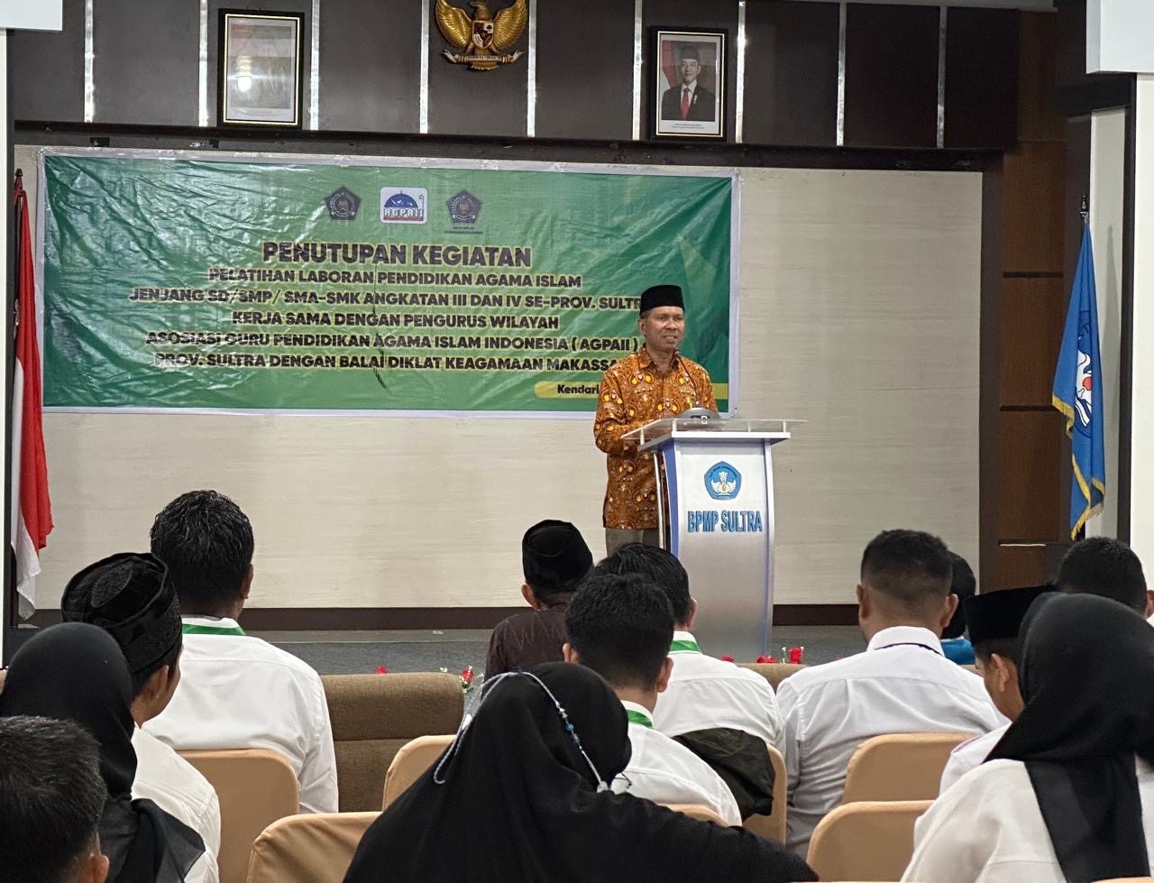 Hadir dalam menutup kegiatan perwakilan BDK Makassar, Sukmah; Kepala BPMP Sultra, Junaidin Pagala; dan Ketua AGPAII Sultra, La Hamiku, menekankan pentingnya peningkatan kreativitas dan inovasi guru PAI dalam menciptakan model pembelajaran yang efektif dan mengikuti perkembangan zaman.