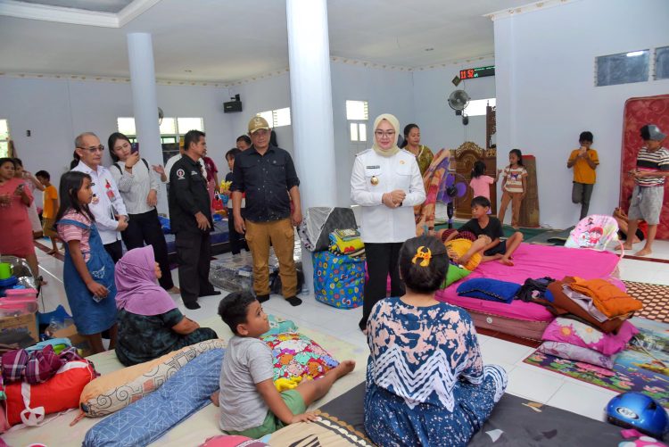 Wali Kota Kendari saat mengunjungi warga di tenda pengungsian.