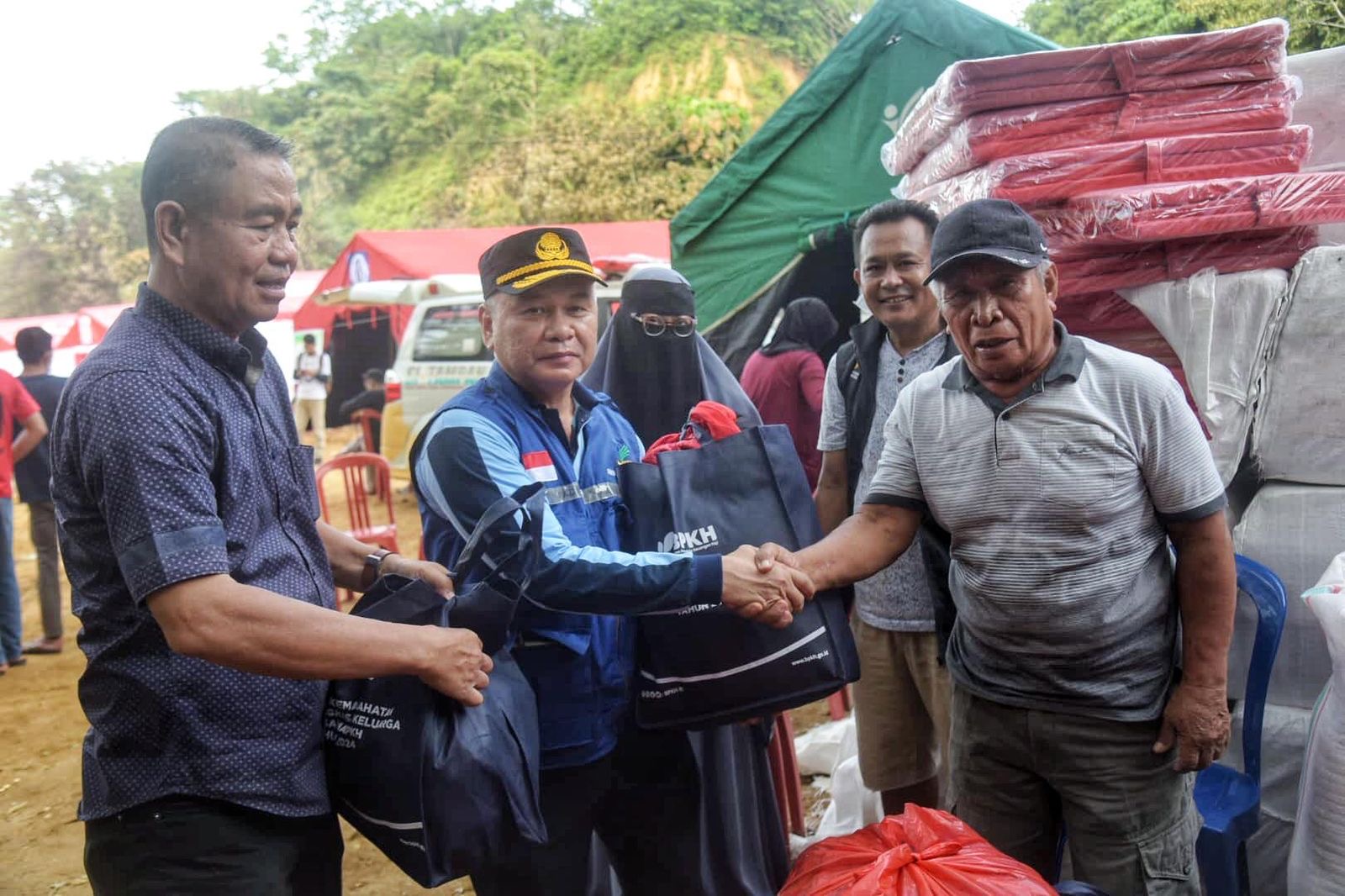 Peninjauan dirangkaikan dengan penyalurkan bantuan kemanusiaan kepada korban.