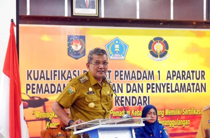 Pj Wali Kota Kendari, Muhammad Yusup membuka Diklat Pemadam Kebakaran Tingkat Kota Kendari.