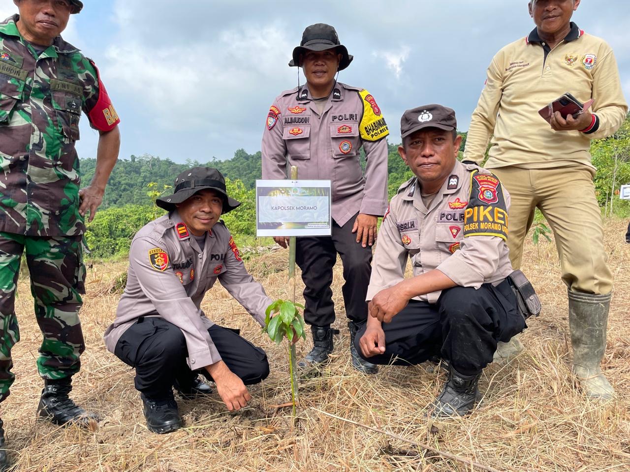 RADARKENDARI.COM, MORAMO UTARA – Kapolsek Moramo Utara, Iptu Tujianto, menyatakan dukungan penuh terhadap kegiatan penanaman pohon serentak yang dilaksanakan Menteri Kehutanan RI di Desa Sanggula, Kecamatan Moramo Utara, Kabupaten Konawe Selatan, Selasa (14/01/2025). Ia turut hadir dalam kegiatan tersebut.