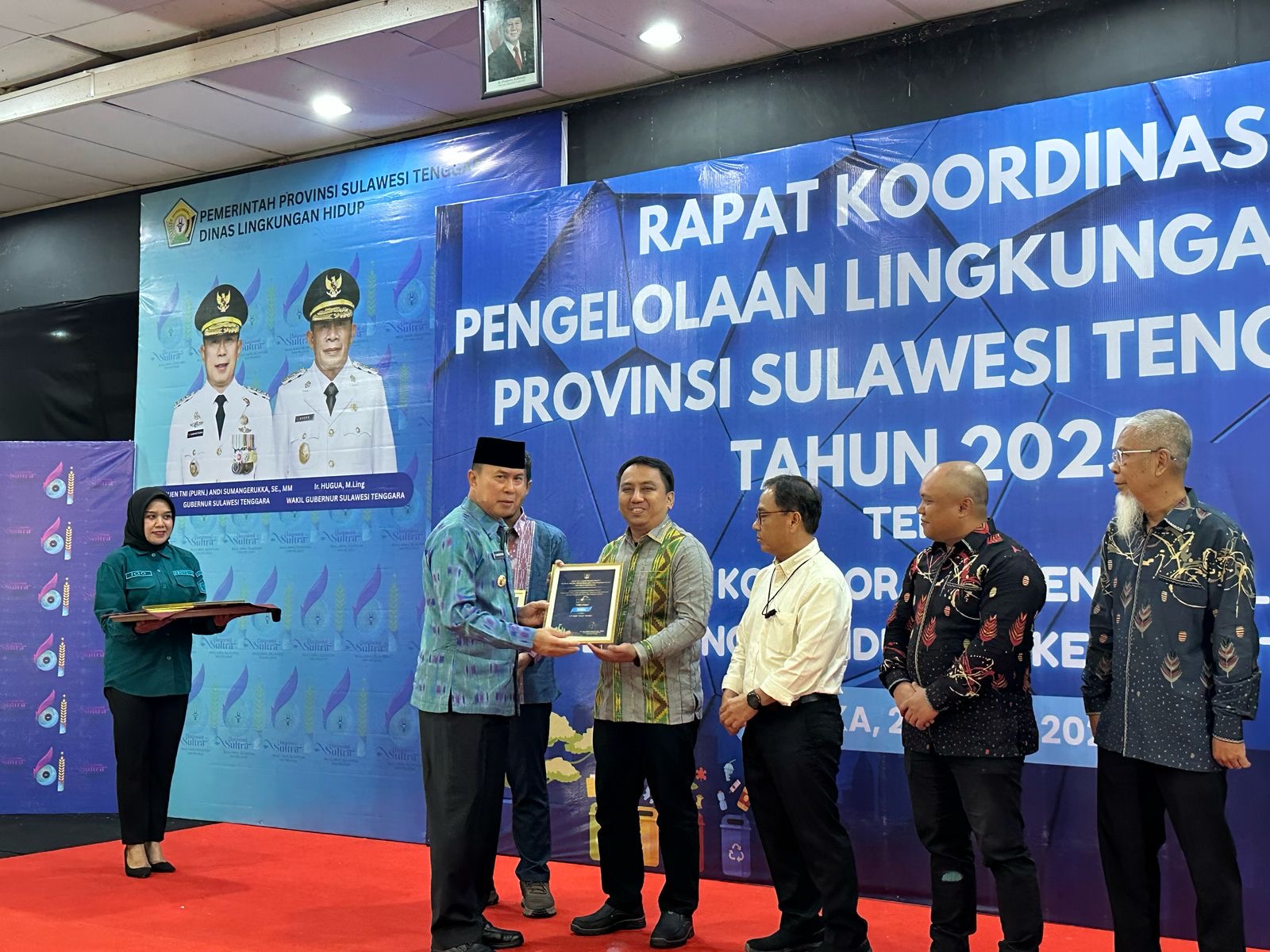 Gubernur Sultra, Andi Sumangerukka menyerahkan penghargaan proper biru dari Kementerian Lingkungan Hidup kepada Plant head PT DSSP Power Kendari, Hasmunir di Kabupaten Kolaka.