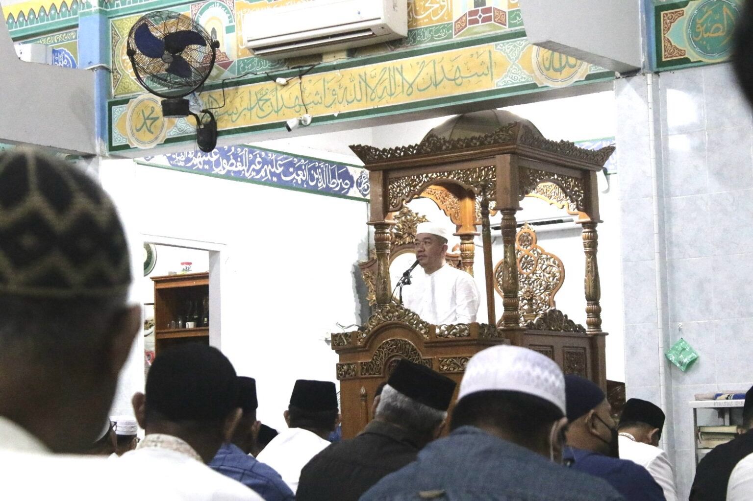 Sekda Kota Kendari, Ridwansyah Taridala menyampaikan ceramah singkatnya dihadapan jamaah Masjid Nurul Hidayat, Minggu (24/03/2024).