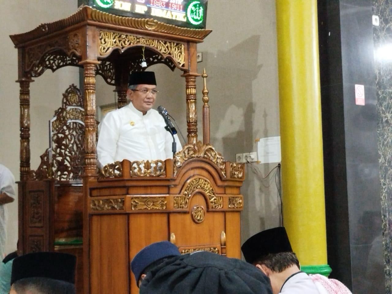 Pj Wali Kota Kendari, Muhammad Yusup saat menyampaikan ceramah singkatnya di Masjid Al Muhajirin Kambu.