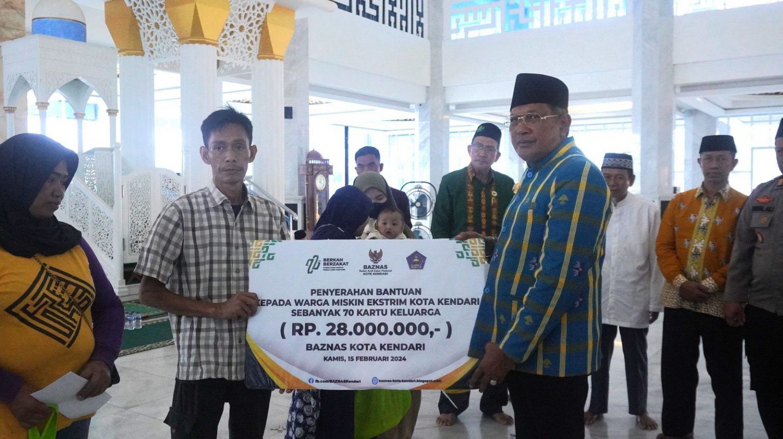 Dalam kegiatan Isra Mikraj Nabi Muhammad SAW di Masjid Al Alam Pj Wali Kota Muh Yusup menyerahkan bantuan secara simbolis pada perwakilan keluarga penyandang stunting, keluarga miskin ekstrem dan tiga ahli waris jaminan kematian pegawai nonASN Kota Kendari.