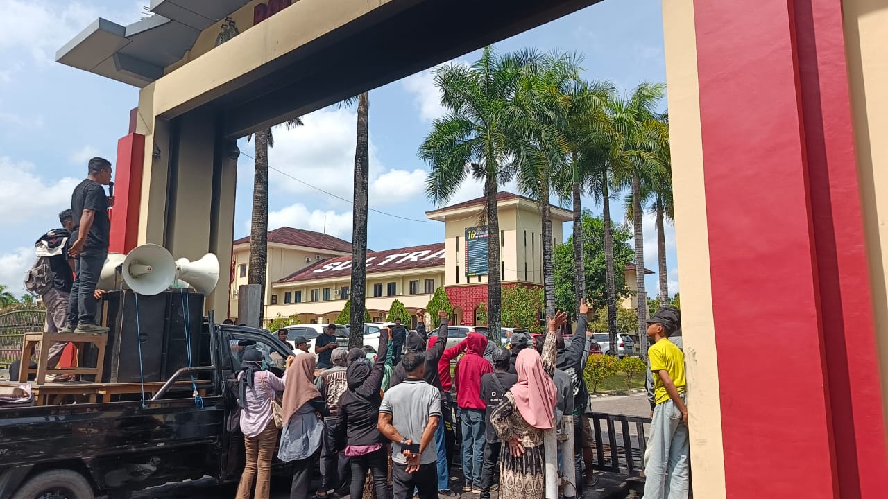 Tiga Aliansi Masyarakat saat menggelar aksi demonstrasi di Polda Sultra.