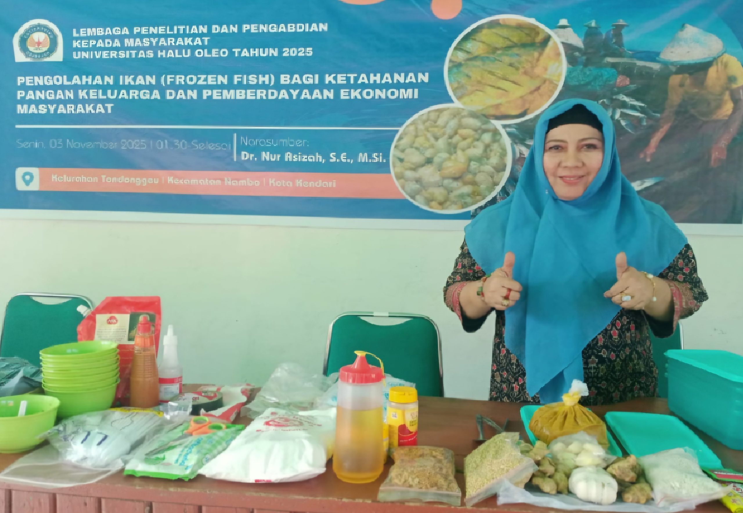 Kendari — Universitas Halu Oleo (UHO) kembali mempertegas peranya dalam pemberdayaan masyarakat pesisir melalui program Pengabdian Internal yang digelar pada Senin, 3 November 2025. Melalui pelatihan pengolahan ikan marinasi dan otak-otak bagi warga Kelurahan Tondonggeu, tim pengabdian UHO mendorong peningkatan keterampilan sekaligus membuka peluang usaha baru bagi masyarakat pesisir agar mampu menghasilkan produk perikanan bernilai tambah dan lebih kompetitif di pasar.