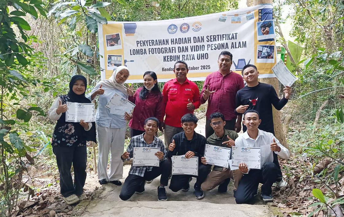 Radarkendari.com, KENDARI – Kepala Unit UPA Kebun Ilmu Hayati Universitas Halu Oleo (UHO), Prof. Dr. Faisal Danu Tuheteru, S.Hut., M.Si, secara langsung menyerahkan reward berupa sertifikat dan uang pembinaan kepada para pemenang Lomba Fotografi dan Video bertajuk ‘Pesona Alam Kebun Raya UHO’ pada hari Rabu (8/9).
